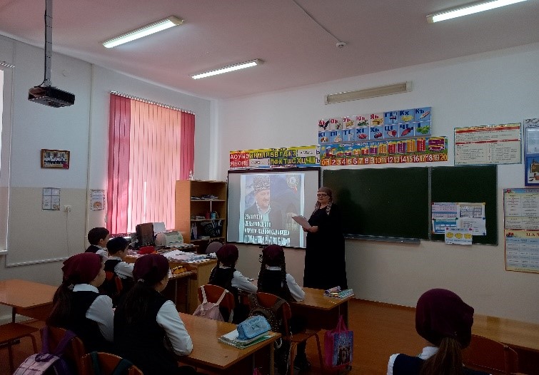 15.04.202115 апреля 2021года учителем начальных классов Камиевой Л.Б. проведена беседа на тему «Ахмад-Хаджи Кадыров- Герой нашего времени», приуроченная к юбилейной 70-й годовщине со дня рождения Первого Президента ЧР, Героя России Кадырова А.А.