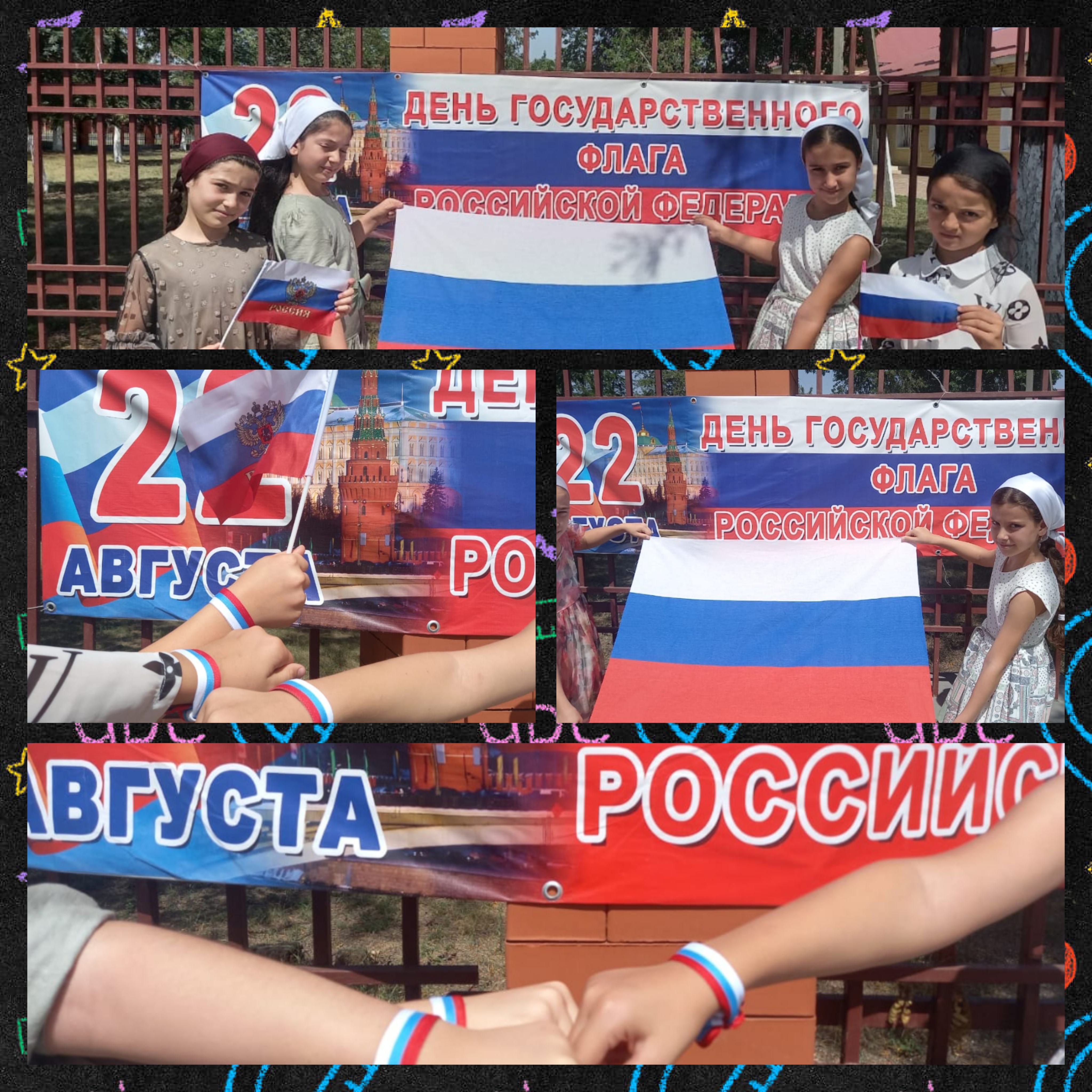 22.08.2022Учащиеся школы активно приняли участие во Всероссийской акции «Три цвета - одна страна», посвященных Дню Российского флага. Так же познакомили с историей возникновения государственного флага России, когда впервые появился триколор, что символизируют цвета, в каком году учрежден этот праздник. Эта акция направлена на воспитание чувства патриотизма у граждан России.