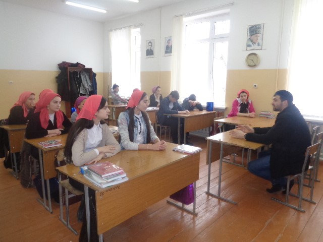25.02.2015В рамках реализации протокольного поручения Главы ЧР Р.А.Кадырова (выездное совещание от 15.01.2015 года №01-02) по профилактике терроризма, наркомании и антиобщественных проявлений в МБОУ «СОШ №2 с.Серноводское» проведена беседа среди обучающихся 9 классов (21 обучающихся) на тему:«Терроризм и экстремизм - опасность обществу».