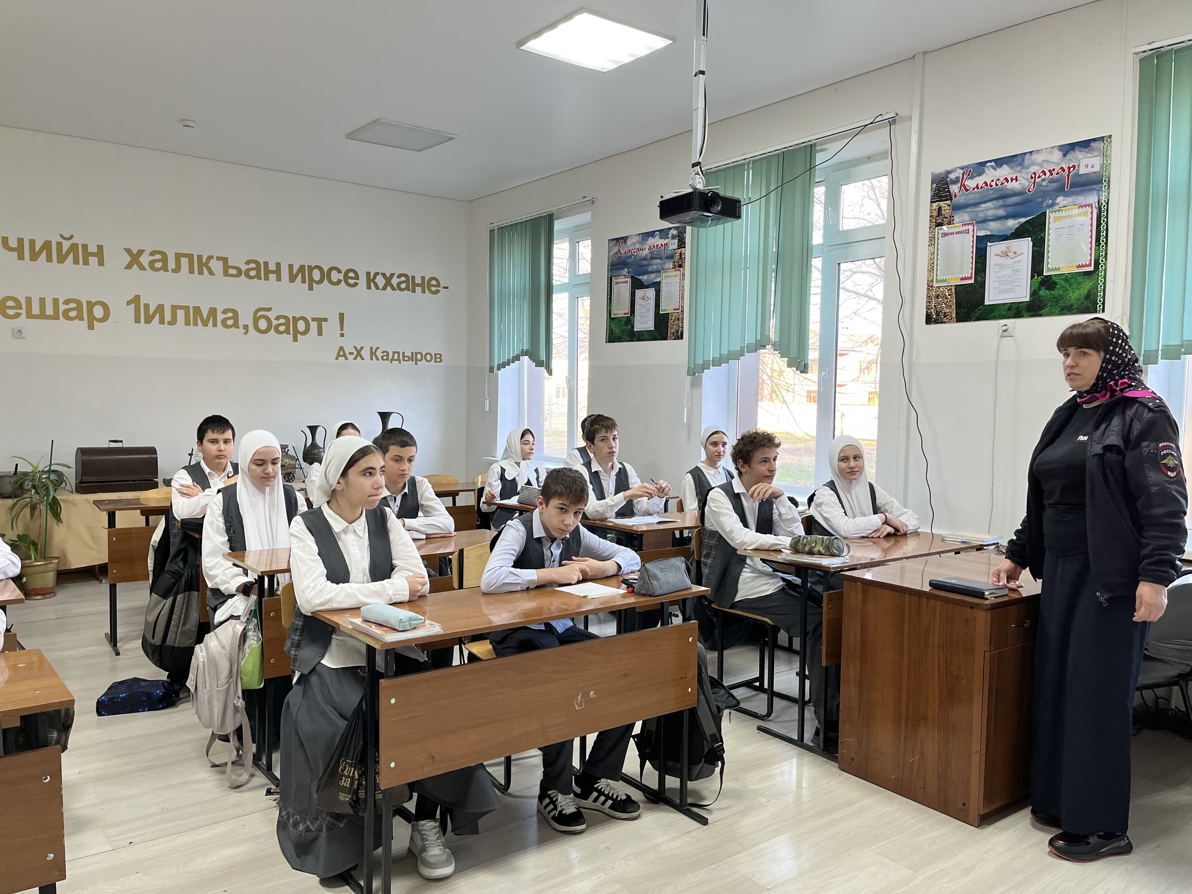 18.11.202418.11.2024г. в МБОУ «СОШ № 2 с. Серноводское» Серноводского муниципального» Инспектор ПДН ОУУП и ПДН старший лейтенант полиции Магомадова Т.Л. , активисты ЕДЮЮ "Юные Кадыровцы" провели беседу на тему «Административные правонарушения».